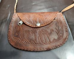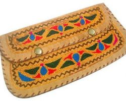 Camel leather clutch bag with embroidery hand embroidery work on camel leather clutch bag