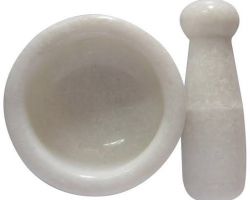 Mortar pestle white marble kharal musal shiny