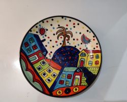 Wall plate blue pottery beautiful handcrafted hand painted wall plate sky