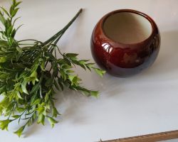Flower pot with sticks beautiful matka shape pot with green leaves sticks