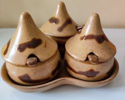 Beautiful ceramic pickle jar matka shape set of 3 with tray and spoon