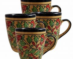 Coffee cup ceramic hand painted coffee mug set of 4 red print
