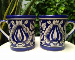 Coffee mug blue pottery hand painted coffee cup blue set of 2