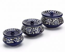Blue pottery Serving Pot set donga set Jaipur art blue pottery donga set of 3 ceramic donga