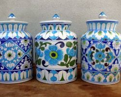 Ceramic jaar Blue Pottery jaar barni for food items jaar 1kg capacity