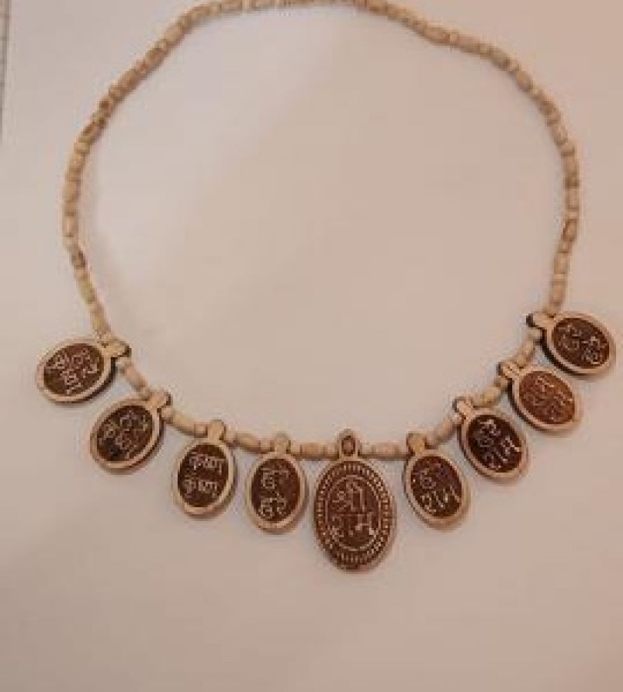 Mala design hare Krishna hare ram mantra on Tulsi beads leaf