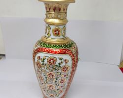 Marble flower vase marble flower pot 9 inches red green