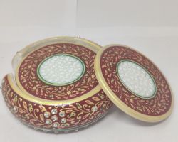 Marble kumkum box with plate kumkum dibbi
