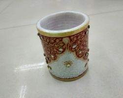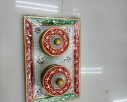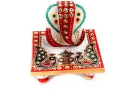 Choki Wood meenakari golden chowki pooja chowki 5x5 inches