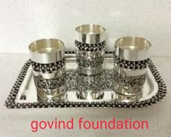 Silver glass set of 6 pure silver tumbler antique design chandi ke glass