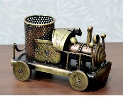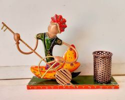 Pen holder with figurine metal pen holder cum showpiece