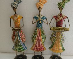 Metal Women figurine showpiece Rajasthani female musicians set of 3