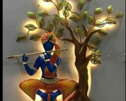 Metal krishna statue with tree wall with decor 3d light 24×36 inches