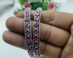 Sterling Silver Bangle kada for Women Oxidised Silver Kada