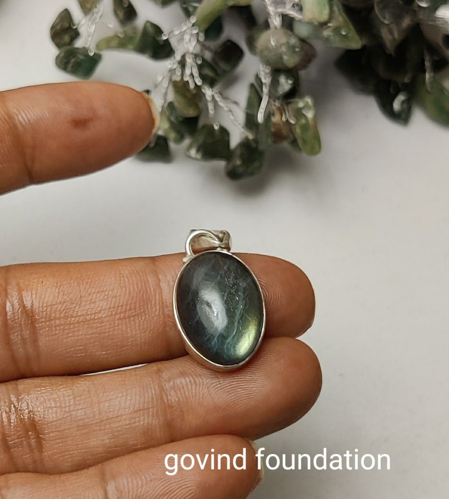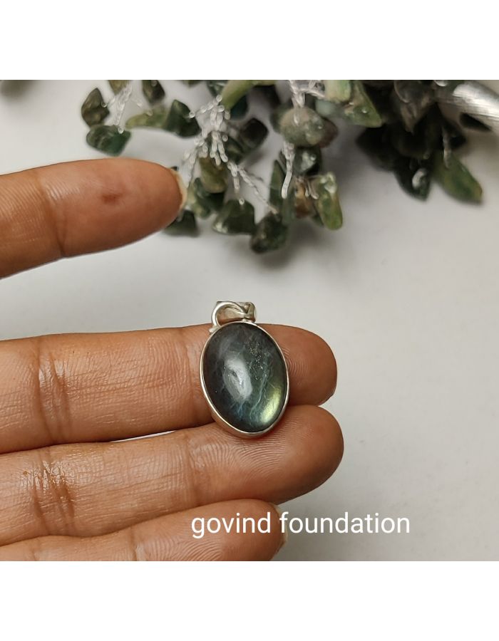 Natural Labradorite stone pendant in pure silver