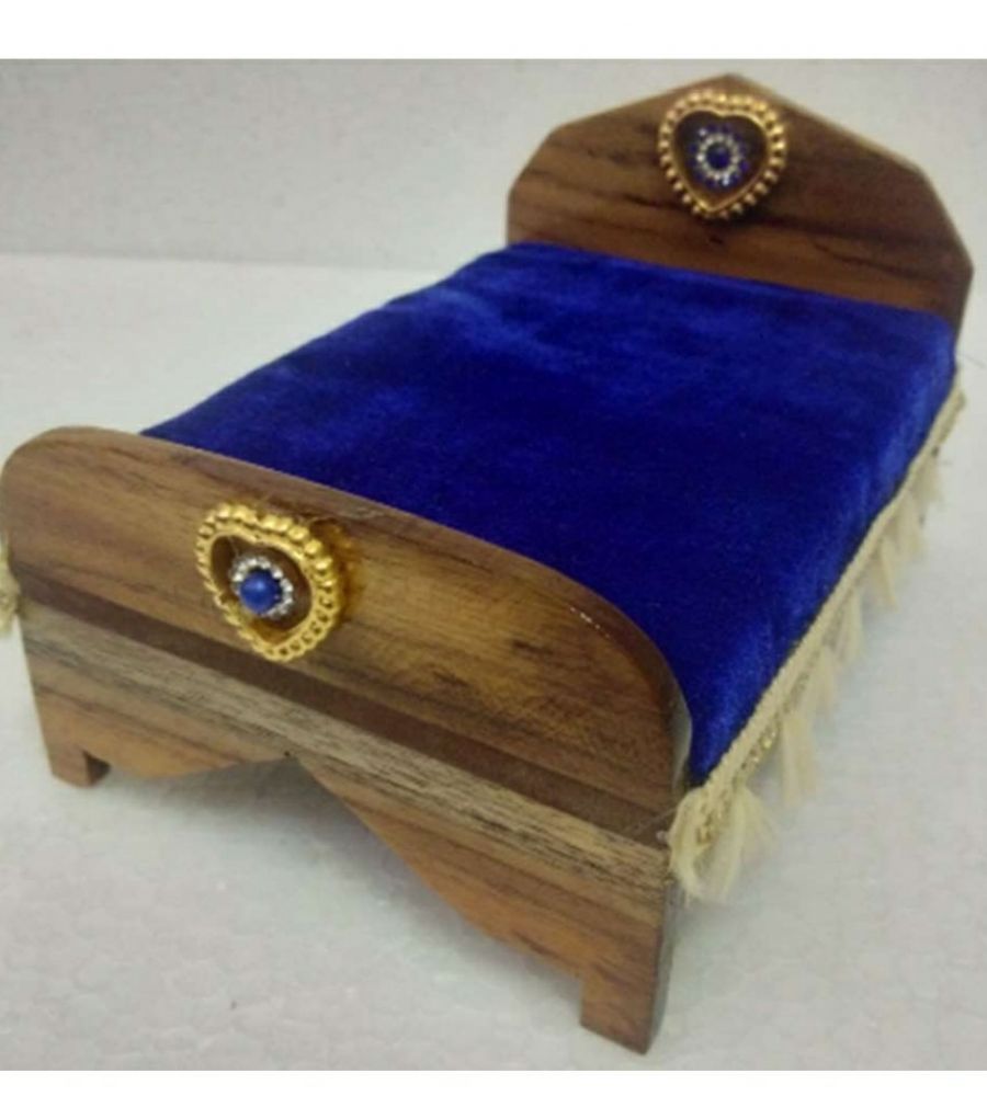 Wooden Handmade Decorated bed with mattress Lord Krishna/Laddu Gopal bed is specially designed for Bal Gopal. This Krishna bed made by good quality of wooden handmade handicraft work, beads Lace with color full beads work.. This attractive bed is perfect for Laddu Gopal. It is also wonderful gift for all special occasion.
