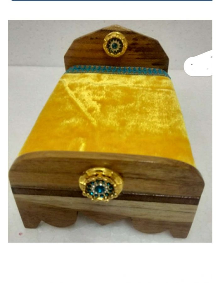 Wooden Handmade Decorated bed with mattress Lord Krishna/Laddu Gopal bed is specially designed for Bal Gopal. This Krishna bed made by good quality of wooden handmade handicraft work, beads Lace with color full beads work.. This attractive bed is perfect for Laddu Gopal. It is also wonderful gift for all special occasion.