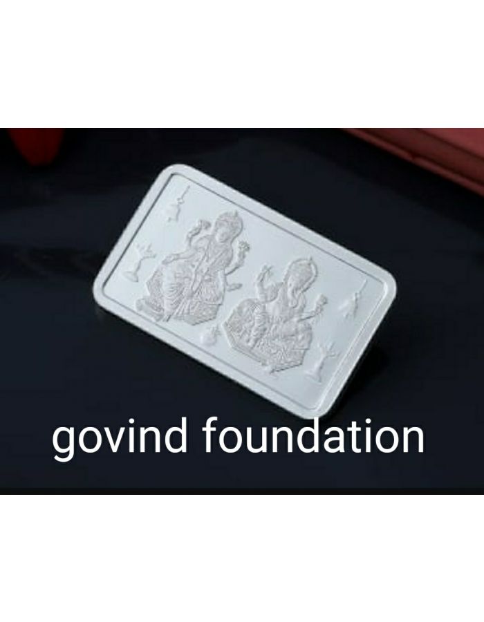 Pure silver rectangular piece with carved laxmi ganesh