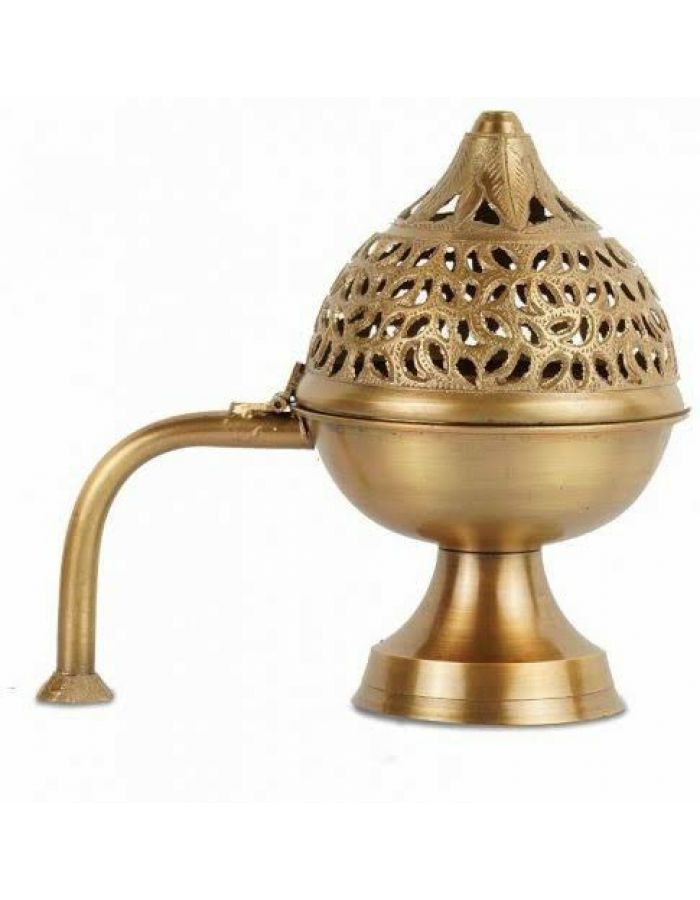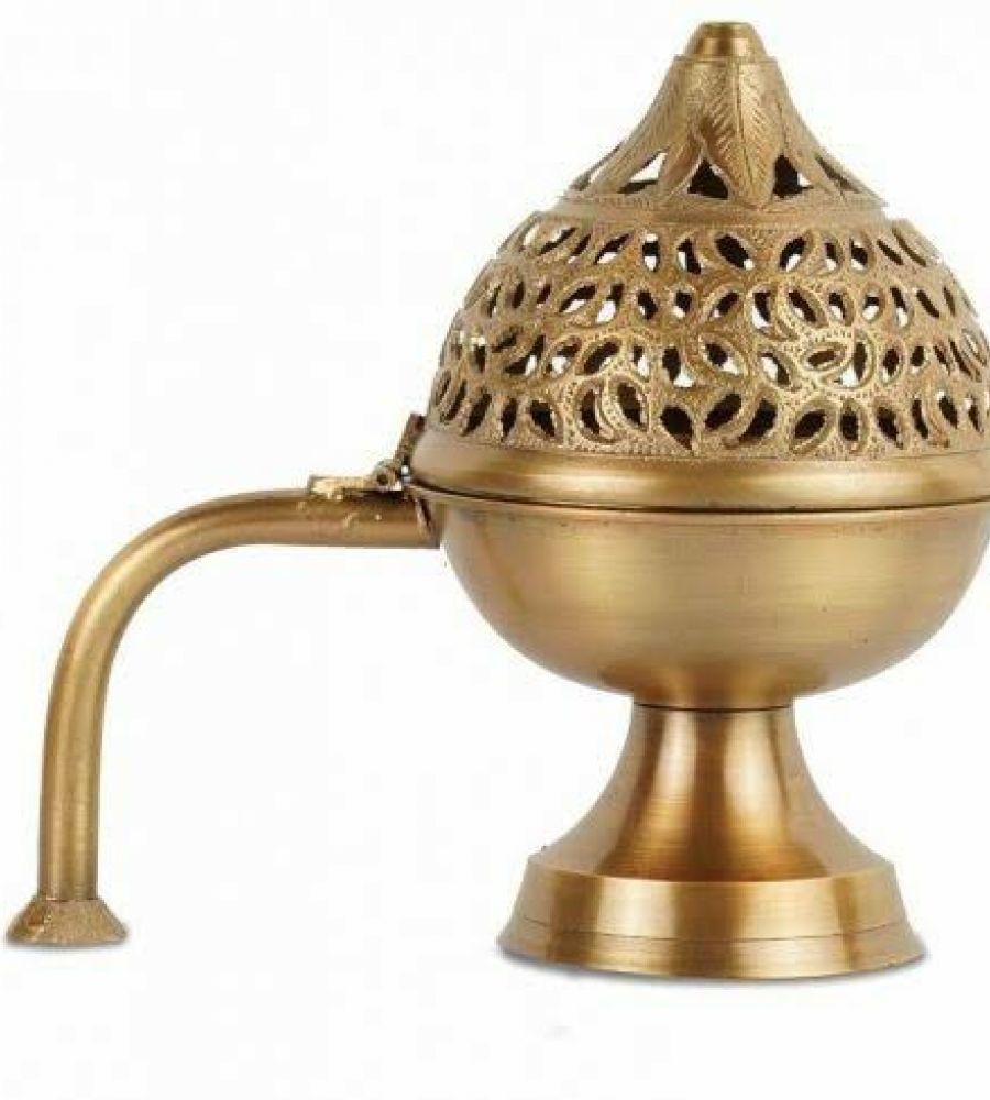 Pure brass loban burner with cover and handle , lid is in cut work design