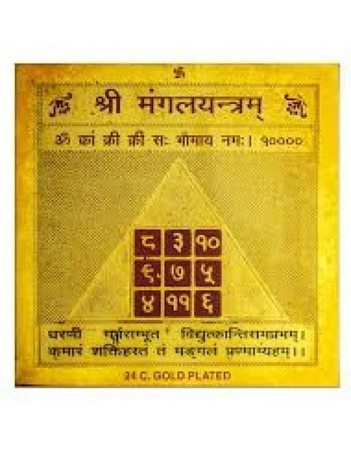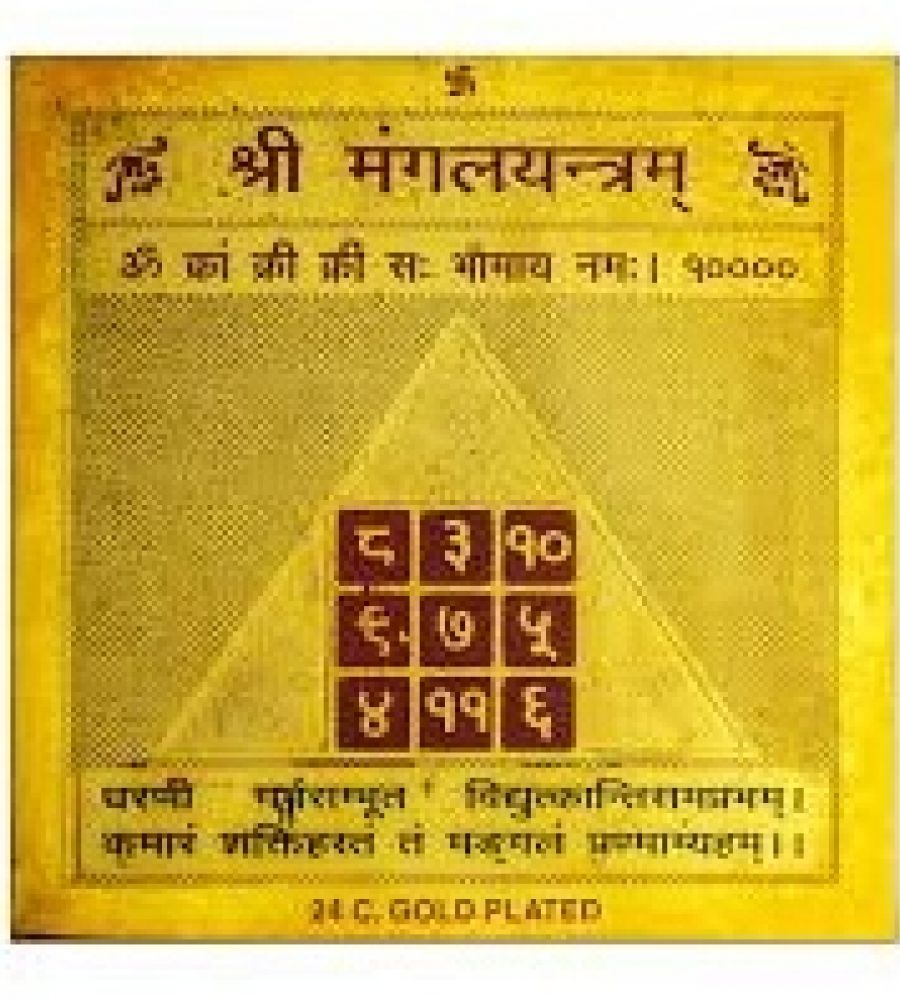 Mangal Yantra improves the auspiciousness of Mars and reduces its malefic effects. This Yantra is instrumental in getting free of debts. Mangla Yantra helps in protecting pregnancy ad a safe progeny. It helps in finding a suitable match and a fulfilling married life.When worshipped, it effectively alleviates malefic effects of Mangal Graha, brings prosperity, success in business, heals marital discord, helps to get rid of Mangal dosh in kundali. It is a very powerful and extremely helpful way of enjoying great results. It can easily save you from accidents, cures, diseases, anger and debts. You will overcome and enjoy quick recovery if you worship it every day. Mangal yantra is often known to keep your temper and problems at bay. However, girls are often told to worship this yantra if they reach a marriageable age. It is powers cosmic blessings. In case of any delayed marriage this yantra will diminish all your efforts to not enjoy a successful married life. Any kind of health worries like stroke, fever, tension, low and high B.P,