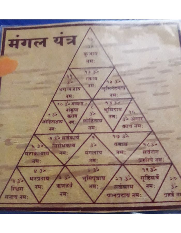 Mangal Yantra improves the auspiciousness of Mars and reduces its malefic effects. This Yantra is instrumental in getting free of debts. Mangla Yantra helps in protecting pregnancy ad a safe progeny. It helps in finding a suitable match and a fulfilling married life.When worshipped, it effectively alleviates malefic effects of Mangal Graha, brings prosperity, success in business, heals marital discord, helps to get rid of Mangal dosh in kundali. It is a very powerful and extremely helpful way of enjoying great results. It can easily save you from accidents, cures, diseases, anger and debts. You will overcome and enjoy quick recovery if you worship it every day. Mangal yantra is often known to keep your temper and problems at bay. However, girls are often told to worship this yantra if they reach a marriageable age. It is powers cosmic blessings. In case of any delayed marriage this yantra will diminish all your efforts to not enjoy a successful married life. Any kind of health worries like stroke, fever, tension, low and high B.P,