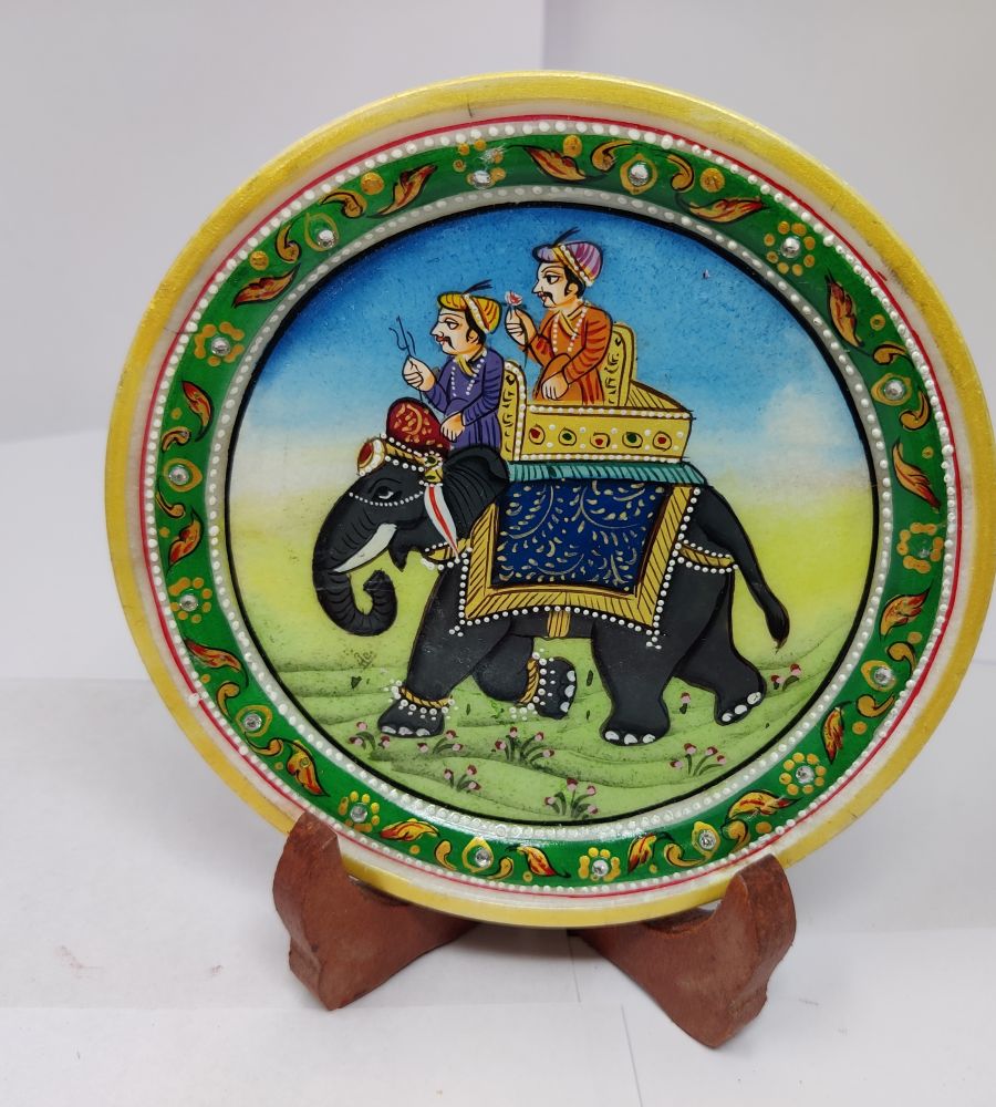 Beautiful handmade embossed work marble plate with stand for home decoration, office table and gift purpose
