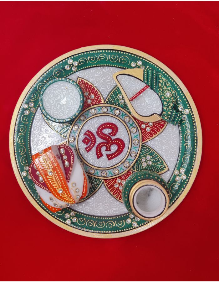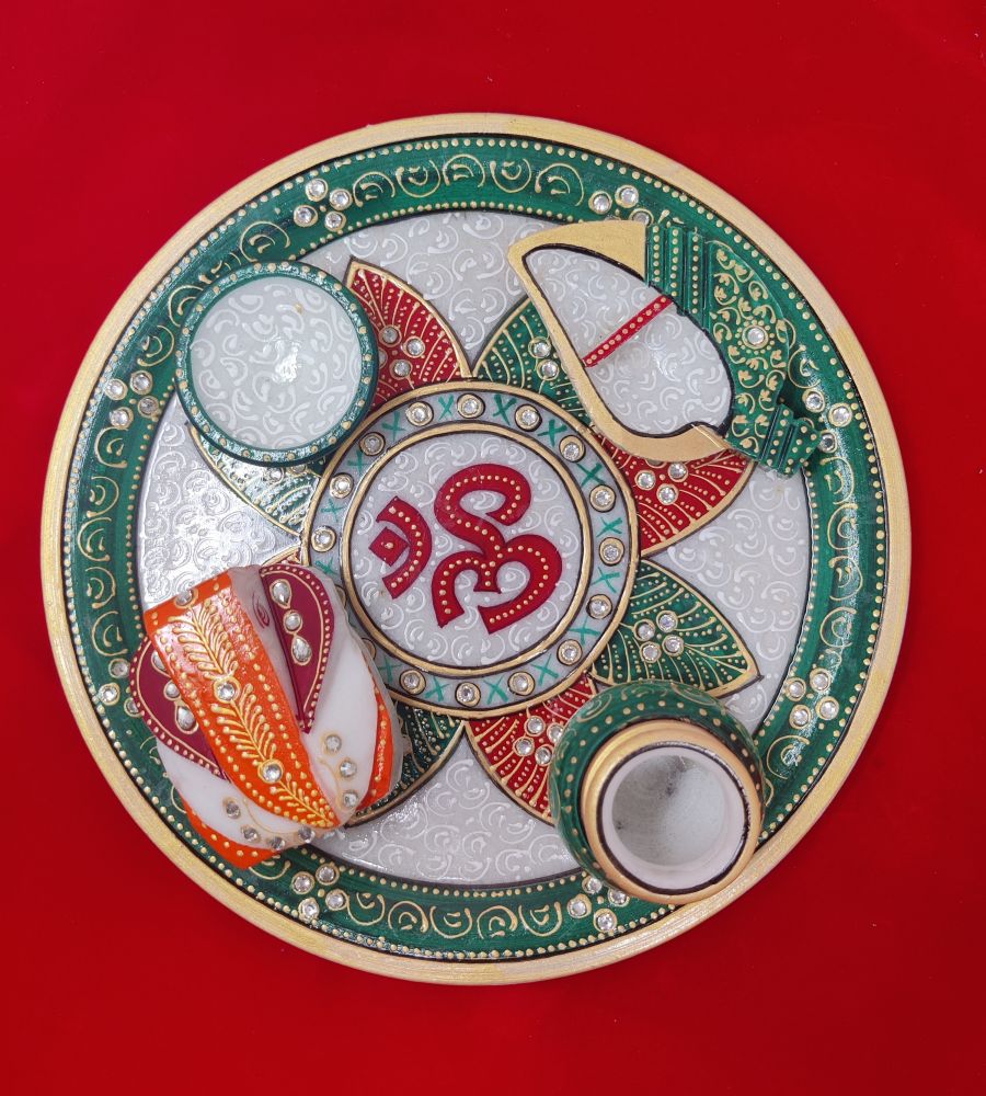 Beautiful decorative handcrafted marble painted complete Pooja thali set
