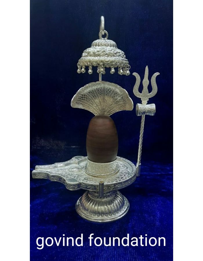 Pure silver shivling set with stand , sheshnaag trishul and chhatra