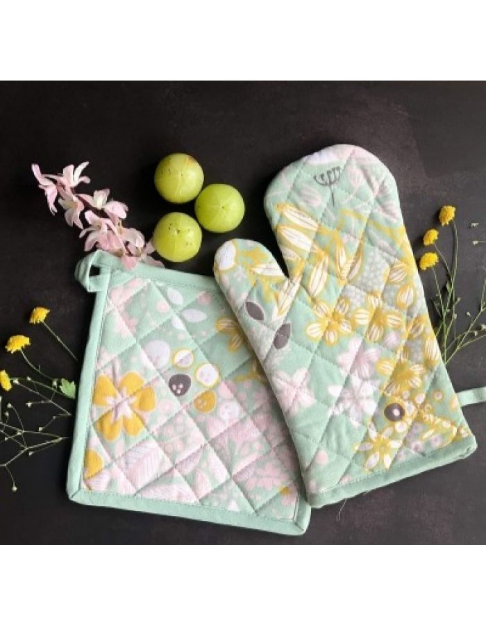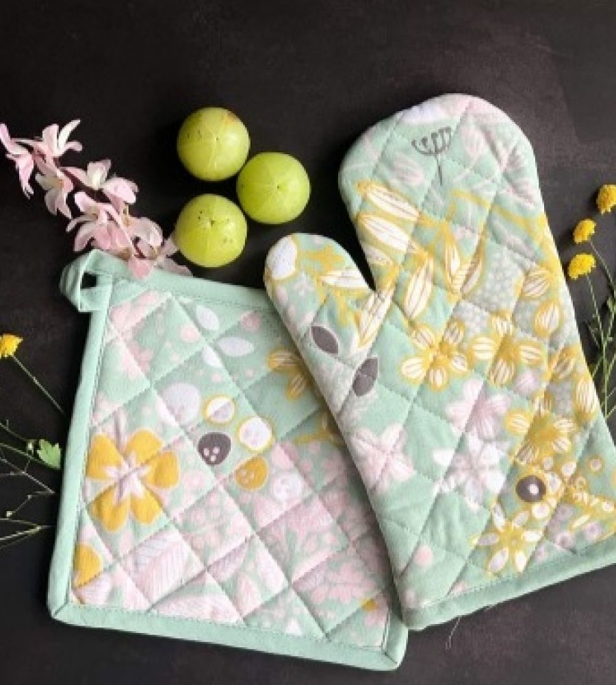 Heat proof oven gloves with beautiful pattern which can used inside oven even at high tempratures.