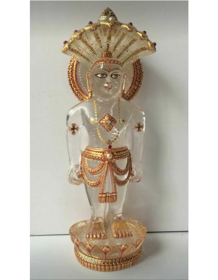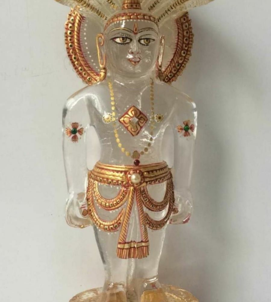 This is beautiful handmade crystal quartz idol with gold work beautiful looking parshnath idol