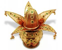 Ornate copper kalash with copper leaf and nariyal complete copper kalash set