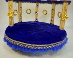 Laddu gopal Bed cum singhasan with mattress decorative round shape bed blue 2