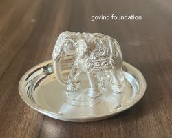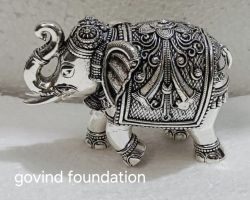 Silver Elephant Trunk down 21gm Right leg forward Chandi ka thoss Hathi