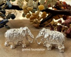 Silver Elephant Pair Trunk down 60gm Pure Silver Solid Elephant
