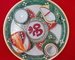 Marble Pooja thali 9 inches Pooja thali set of 5 piece