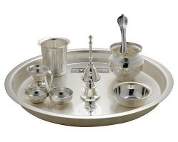 Pure silver pooja thali set chandi ki pooja thali set of 10 piece