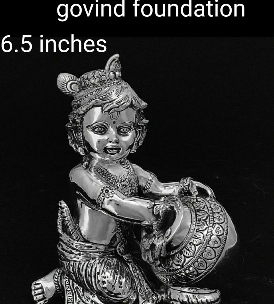 Bal kanha makhan matki idol in pure silver