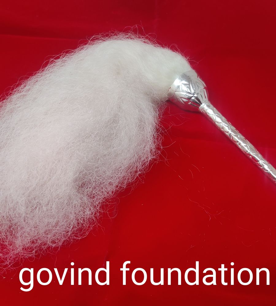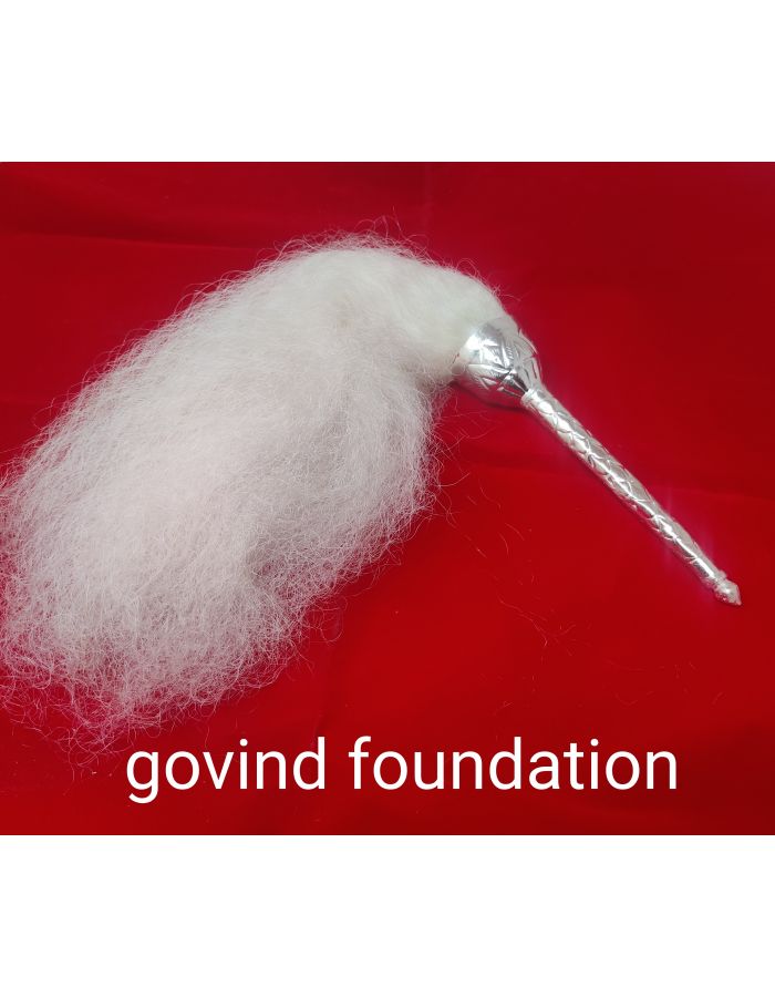 Chanvar is a yak-tail fan which is waved at the end of arati. . Waving the Chanvar is also a gesture of honoring the Deity and Her royal power. Considered ritually pure, the only hair that can be used in puja is that from the tail of a yak. Very good quality white Chanvar fan for Deity worship. Chanvars have been made from the white hair of the Tibetan yak therefore the Chanvar can also be referred to as "the yak-tail whisk." The chamara is used by Krishna's queens at Dwarka to worship Him and throughout the ages the pujaris in the temples of Krishna and the demigods use the Chanvar, the yak-tail wisk, as an integral part of the aroti service