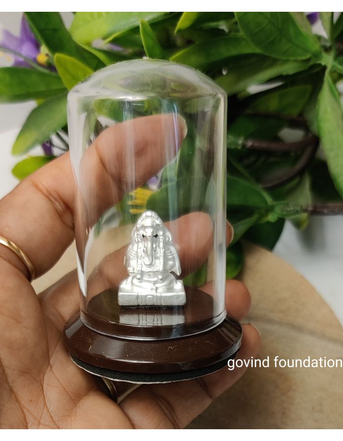 Pure Silver Ganesh idol in glass case keep in home , office and best item for gift