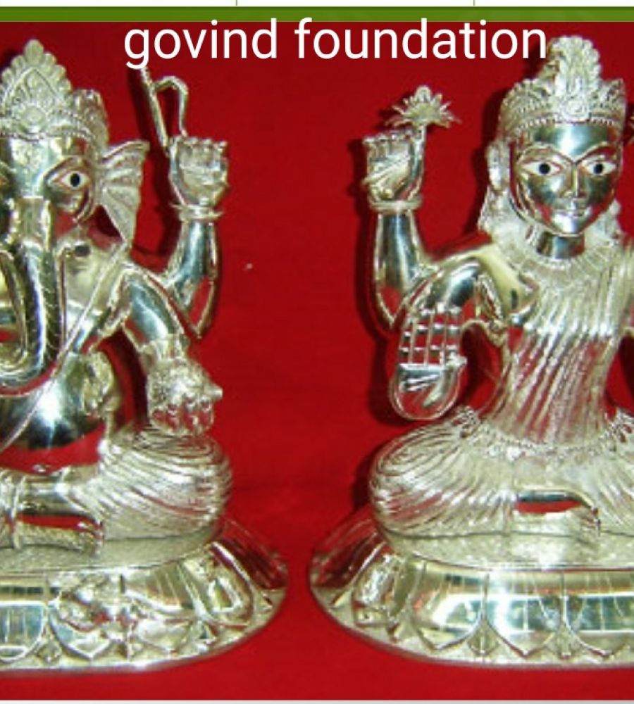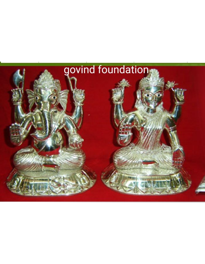 Fine finish laxmi ganesh idol in pure silver 2.5 inches