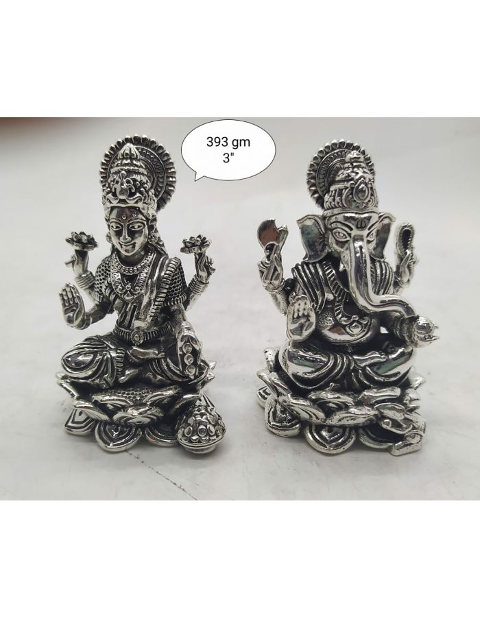 Pure silver Laxmi ganesh idol fine finish 3 inches solid form