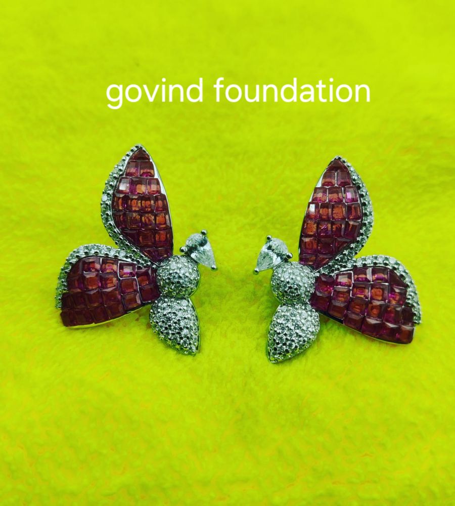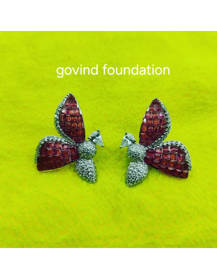 Beautiful stylish silver Earrings with Ruby and Zircon work