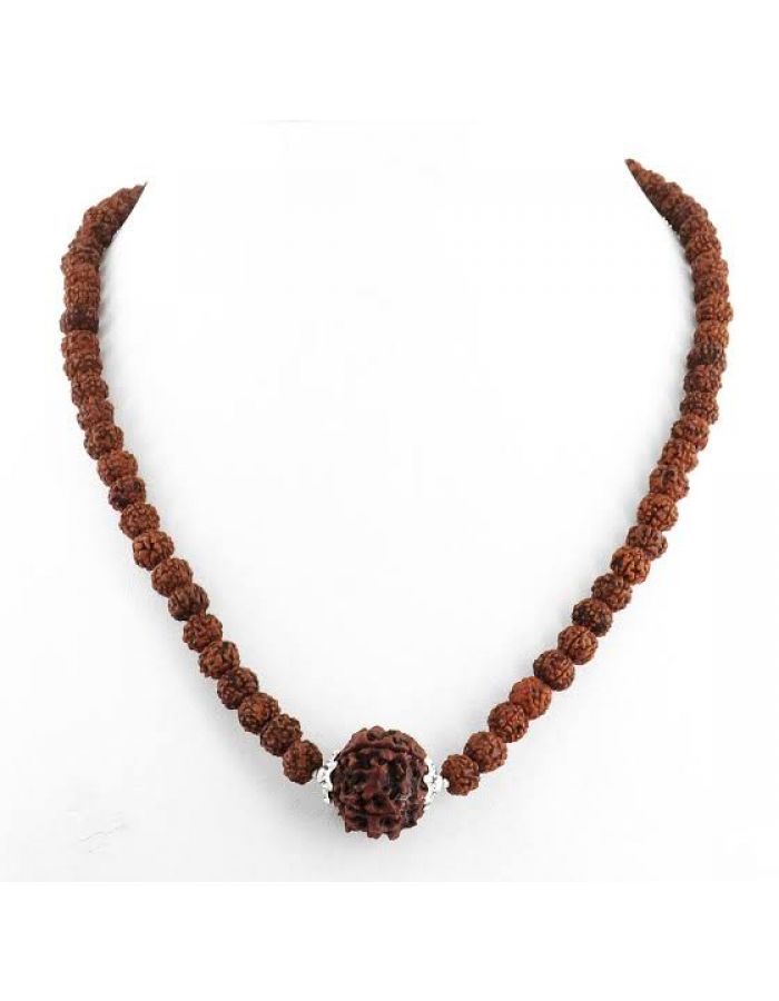 5 face big rudraaksh in silver cap with Rudraksha mala