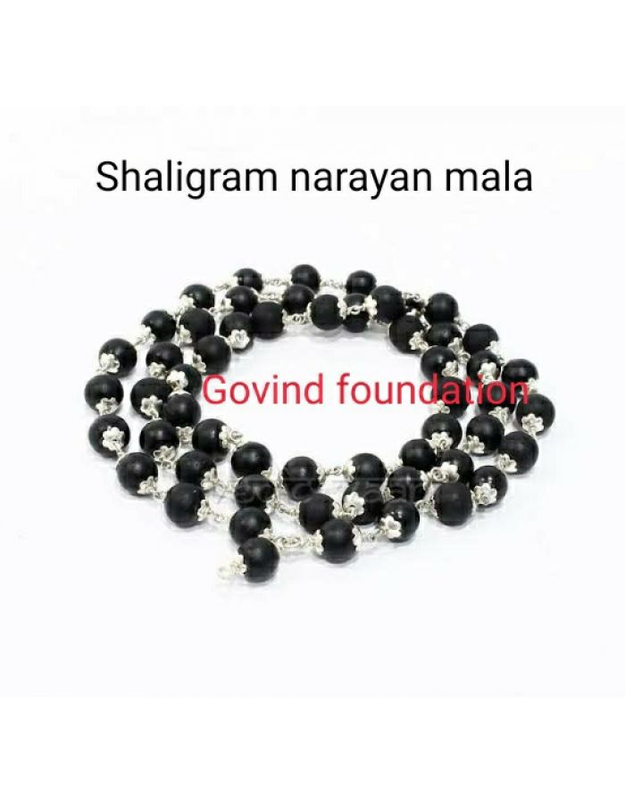 Shaligram Mala Benefits -shaligram stone is most sacred stone in the world There is residential of Goddess lakshmi,Saraswati,Ganesh and all god in that house where saligram is kept and worshipped. According to Shastras, wearing Shaligram ji benefits the family in 6 dimensions: Noble way of life, Wealth, Protection from evil, good health, worldly pleasures and blessing from Lord Vishnu .