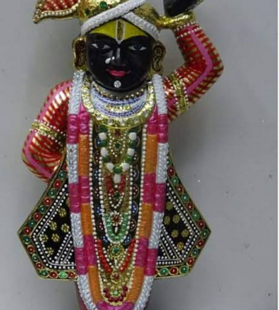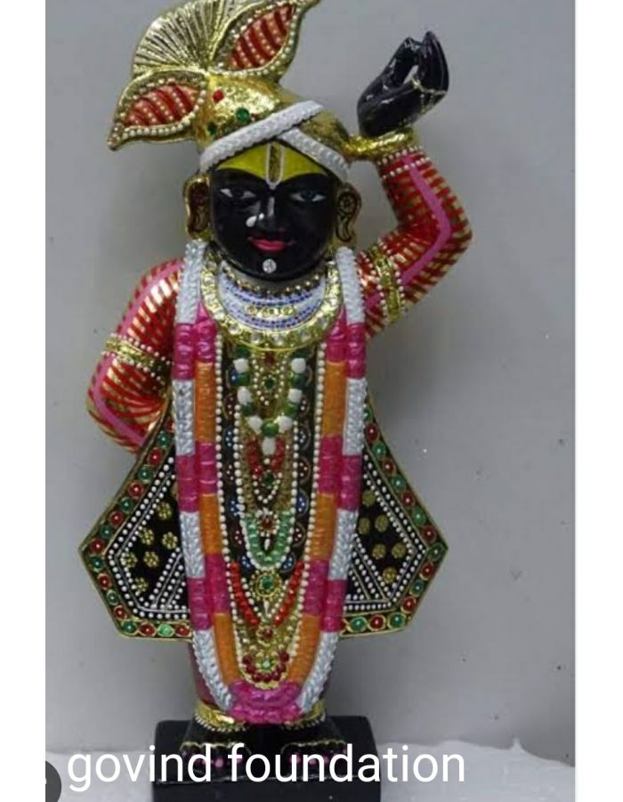 Shrinathji idol in black stone fine finish sharp features with art work painting