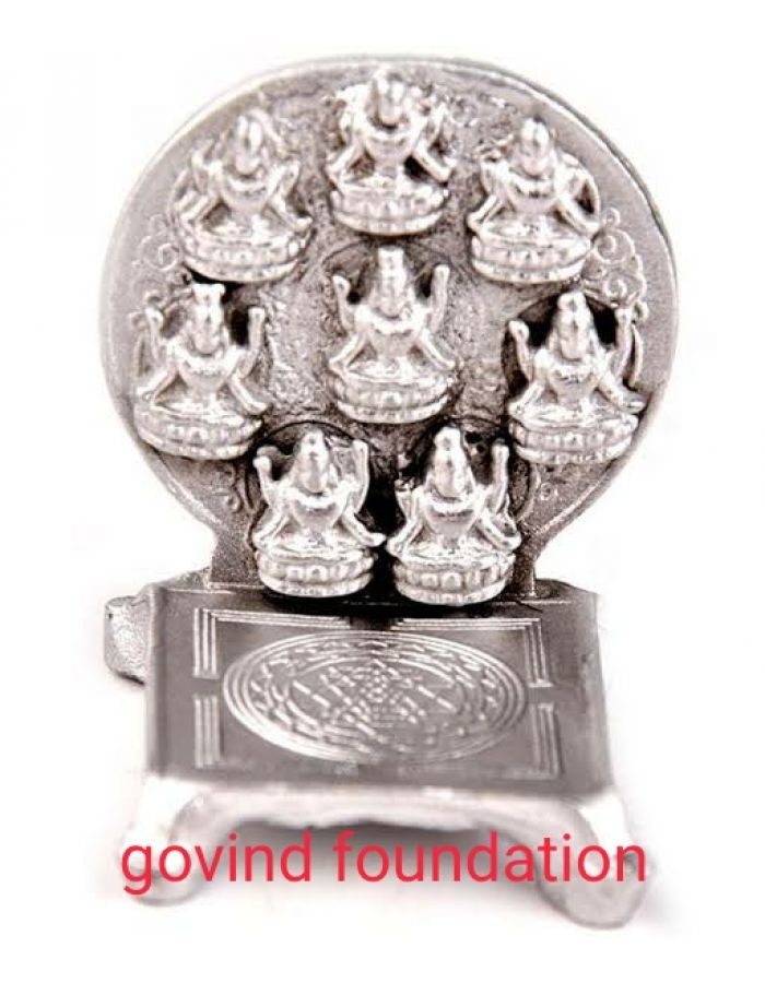 This ashtlaxmi silver choki is with shriyantra and 8 laxmi images , ashtlaxmi choki is symbol of wealth and prosperity .