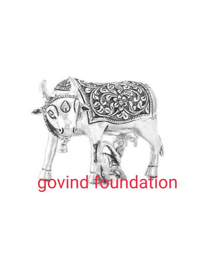 Pure silver cow and calf set chandi ki kamdhenu