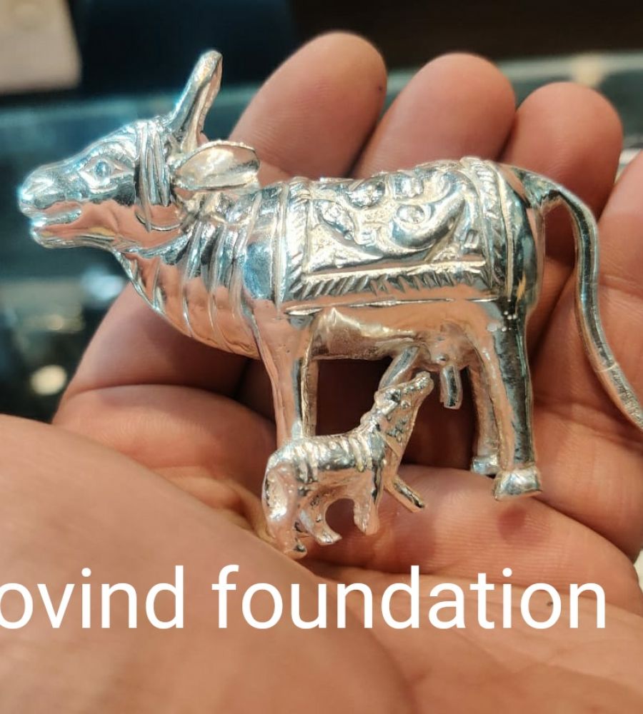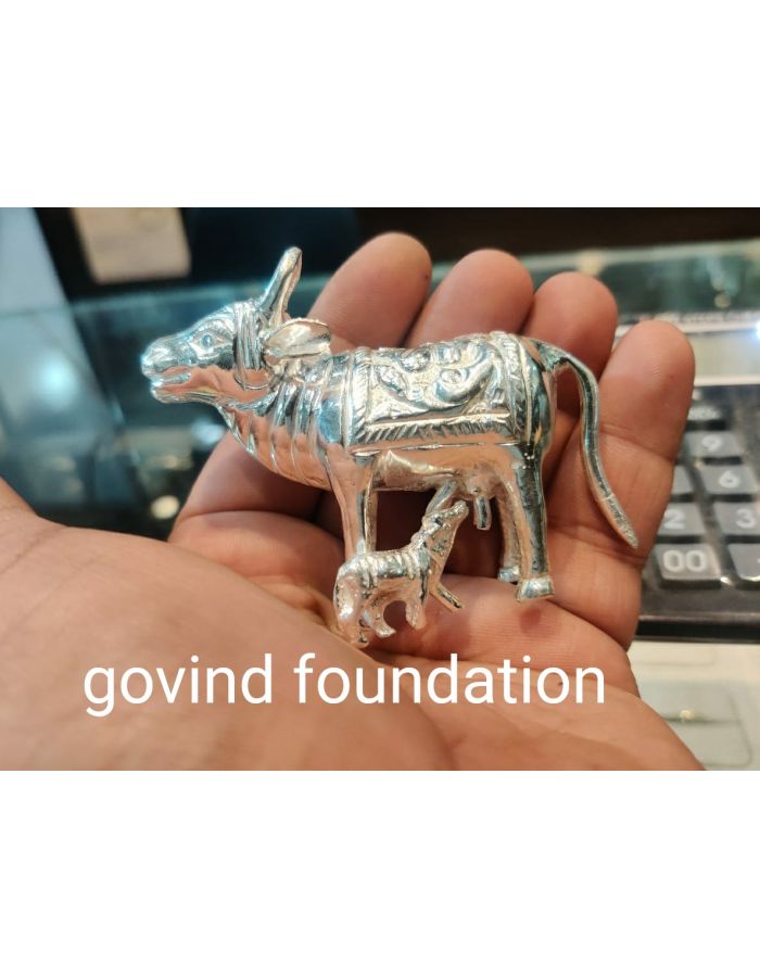 Pure Silver Cow calf Sculpture chandi ki gomata Silver Kamdhenu
