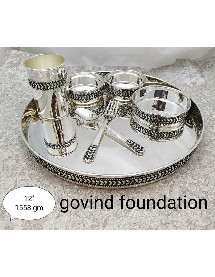 Pure silver fine finish oxidised design Dinner plate set 7 piece