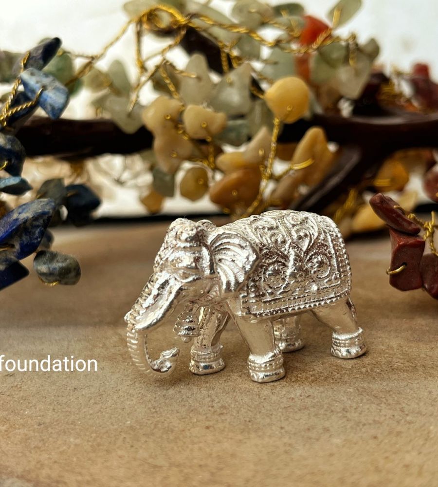 Silver elephant benefits Lal Kitab says that placing a solid silver elephant in the house or in the pocket is beneficial for carrier growth, success and business growth , it brings happiness and prosperity it is a symbol of wealth. In fact, by keeping it, it will fill Rahu in the fifth and the Dodecesh. 4. They say that keeping an elephant made of silver on the north side of the house gives you splendor.A silver elephant is pious and brings blessings. It brings a lot of wealth and luxury to your home and business. Keeping a silver elephant covered in a red cloth in your safe will attract lots of wealth and prosperity. A silver elephant statue brings wealth and prosperity The elephant figurine holds an important place in Hindu mythology and is often used in home décor, to symbolise power, integrity and strength. Ganesha is the elephant-headed God, who bestows blessings and clears obstacles. The magnificent elephant vehicle of Goddesses Lakshmi and Lord Indra represents divine knowledge and royal power. The elephant figure has its own importance, according to Feng Shui, as well as Vastu Shastra. Elephants, in Feng Shui, symbolise power, wisdom, good luck and fertility. People often include statues and paintings of elephants, to bring positivity to a home.Also, it is believed that an elephant with the trunk pointed down stores luck and energy. It is a symbol of wisdom and knowledge allowing you to easily overcome various tasks and obstacles. To stay grounded at work or to reserve strength and vitality at home, keep an elephant with a trunk pointing downward